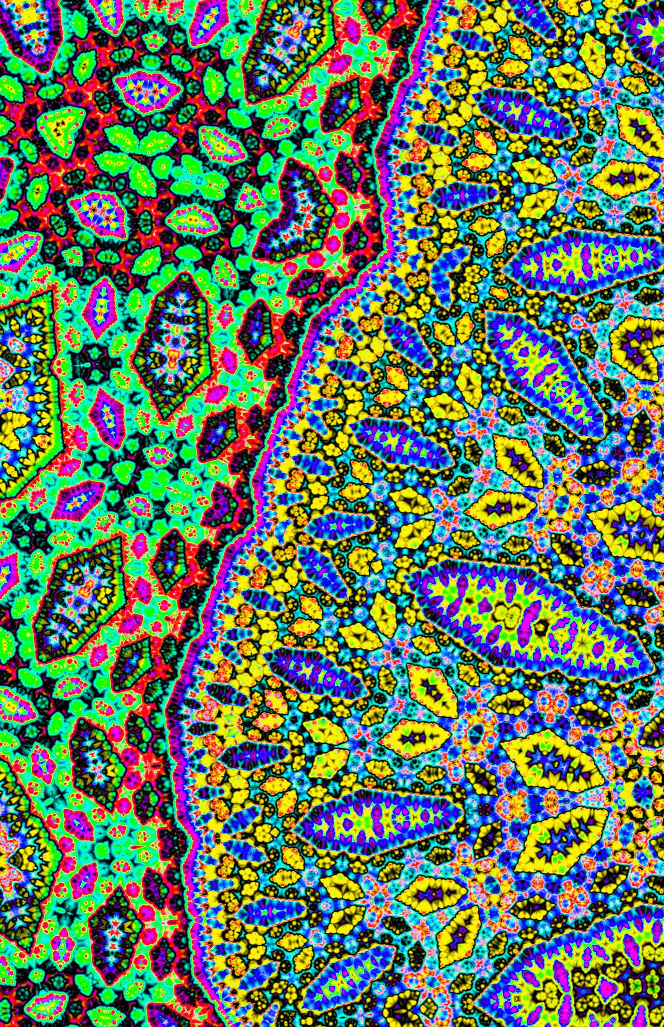 Overexposed felt tip smudged color on geometrical patterns
