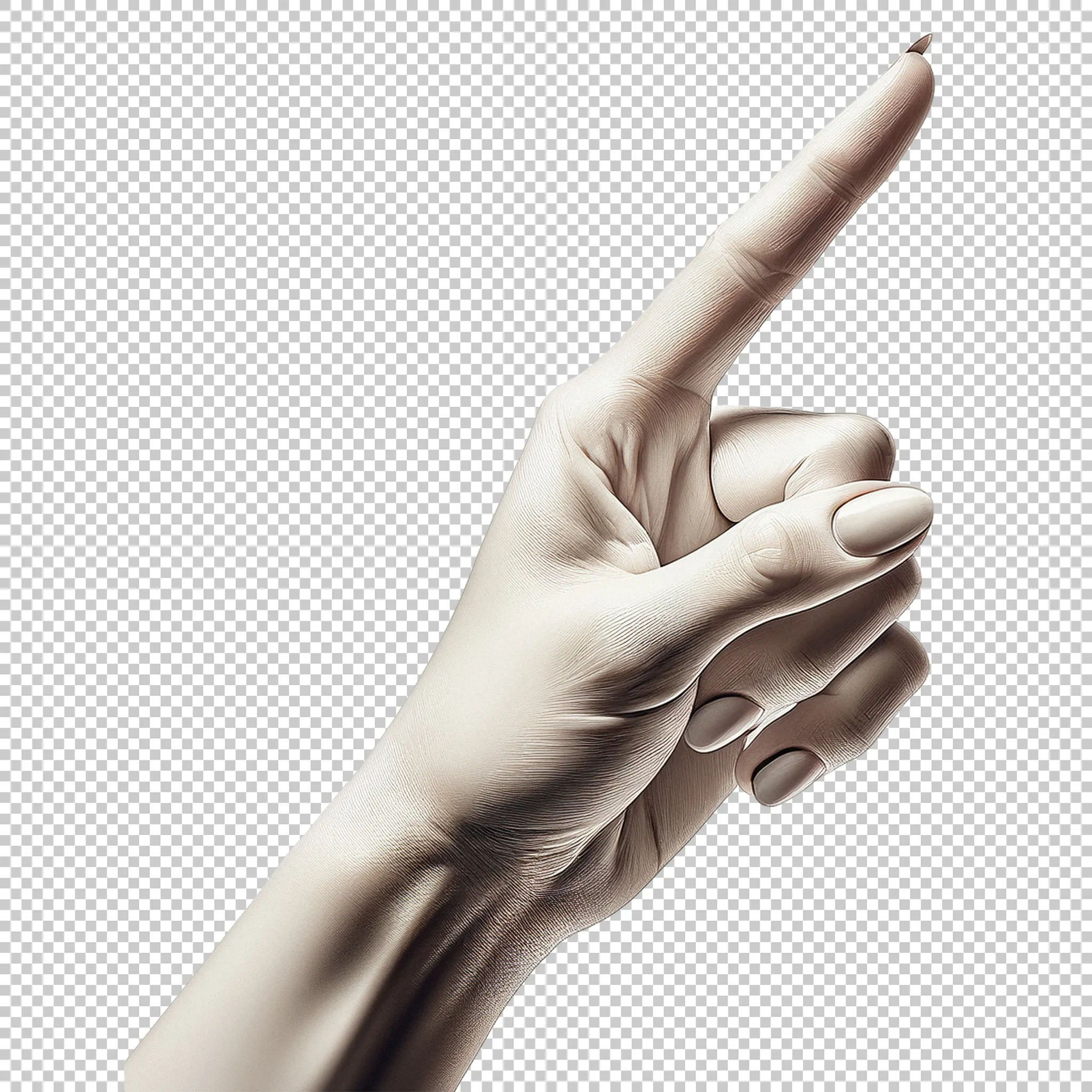 A woman’s hand pointing upwards clipped as a transparent image