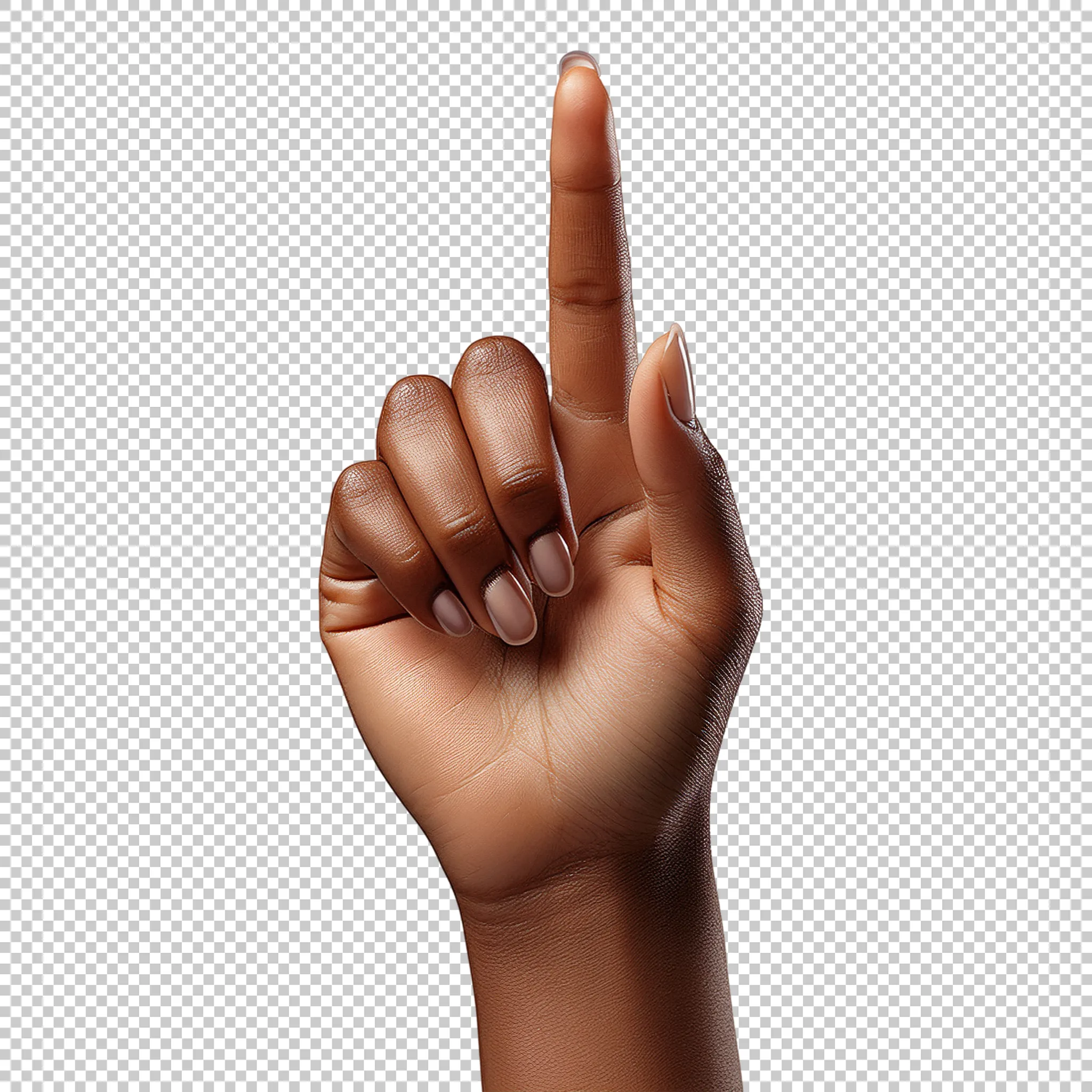 A black woman’s hand pointing upwards clipped as a transparent image