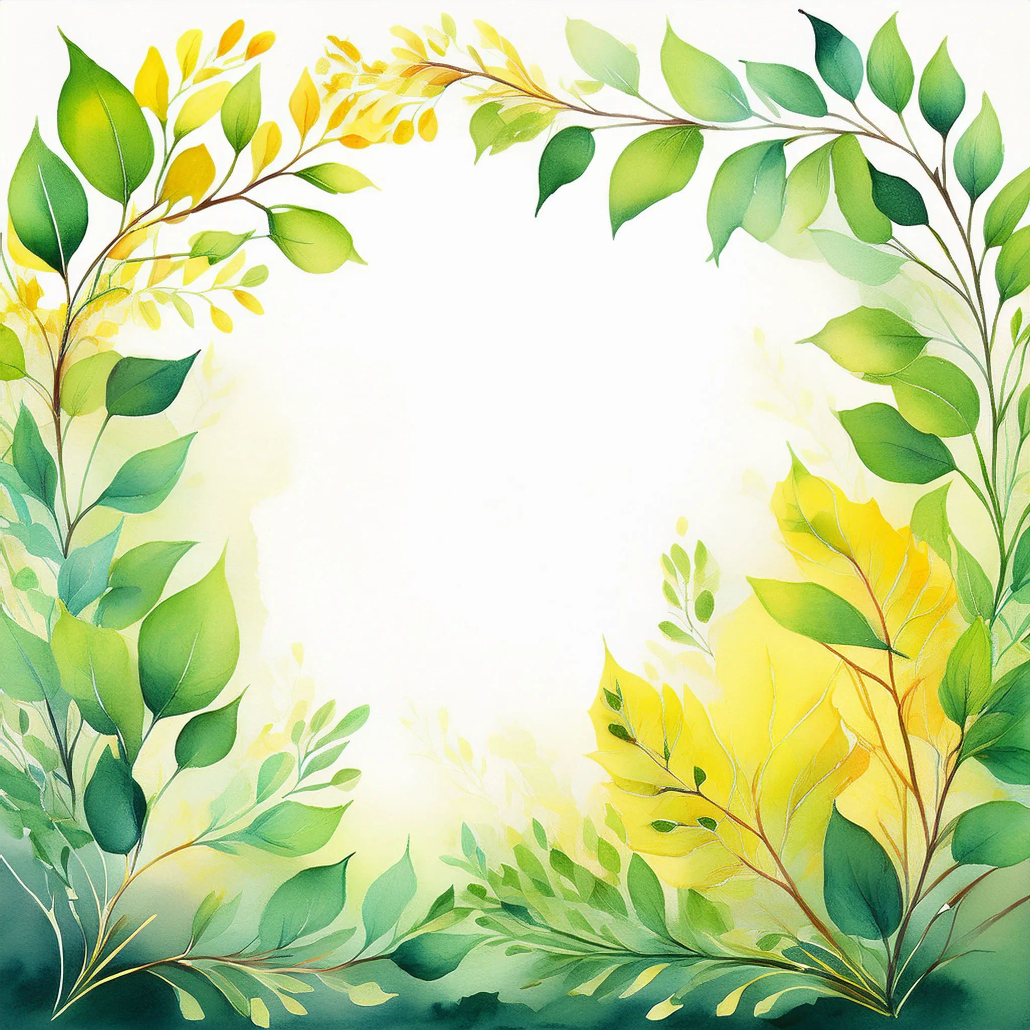 A watercolor-style illustration, featuring stylized tree branches and leaves in various shades of autumnal colors with copy space
