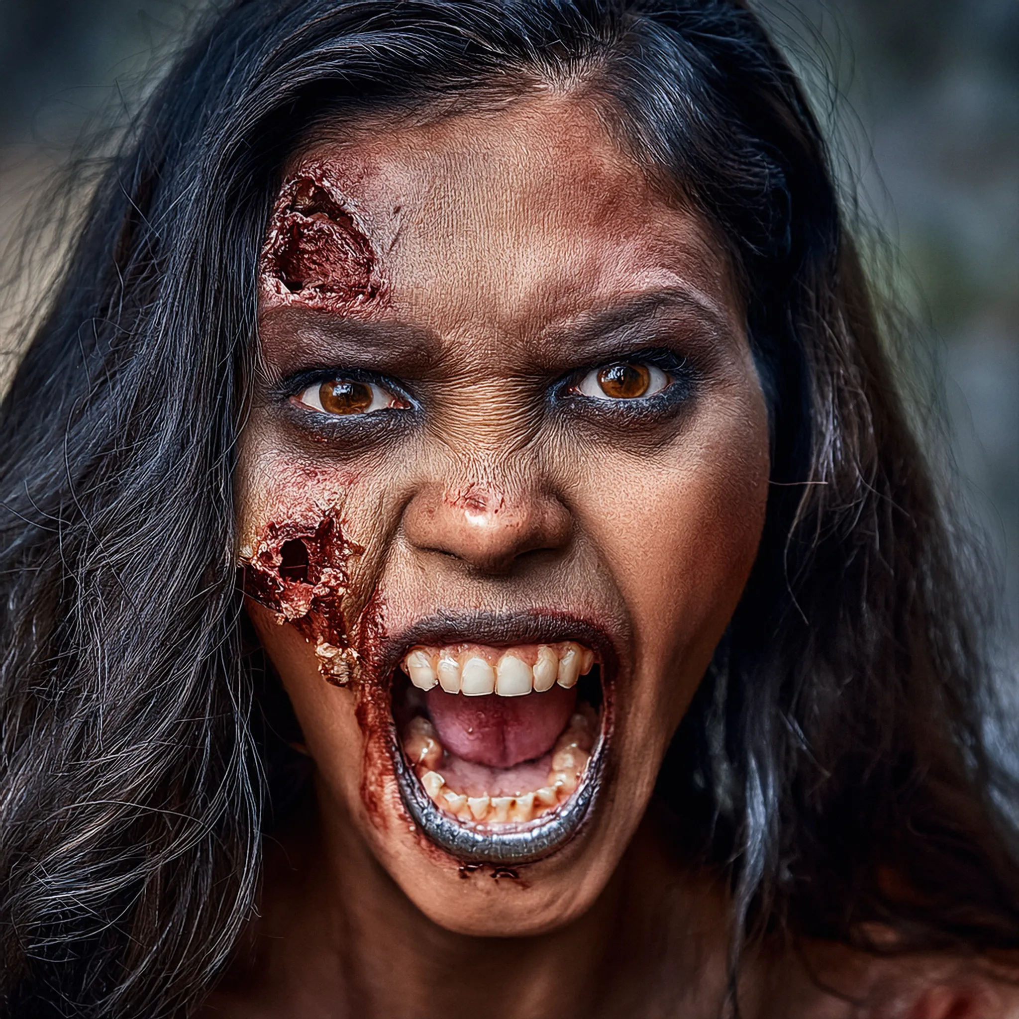 An aggressive spanish female zombie