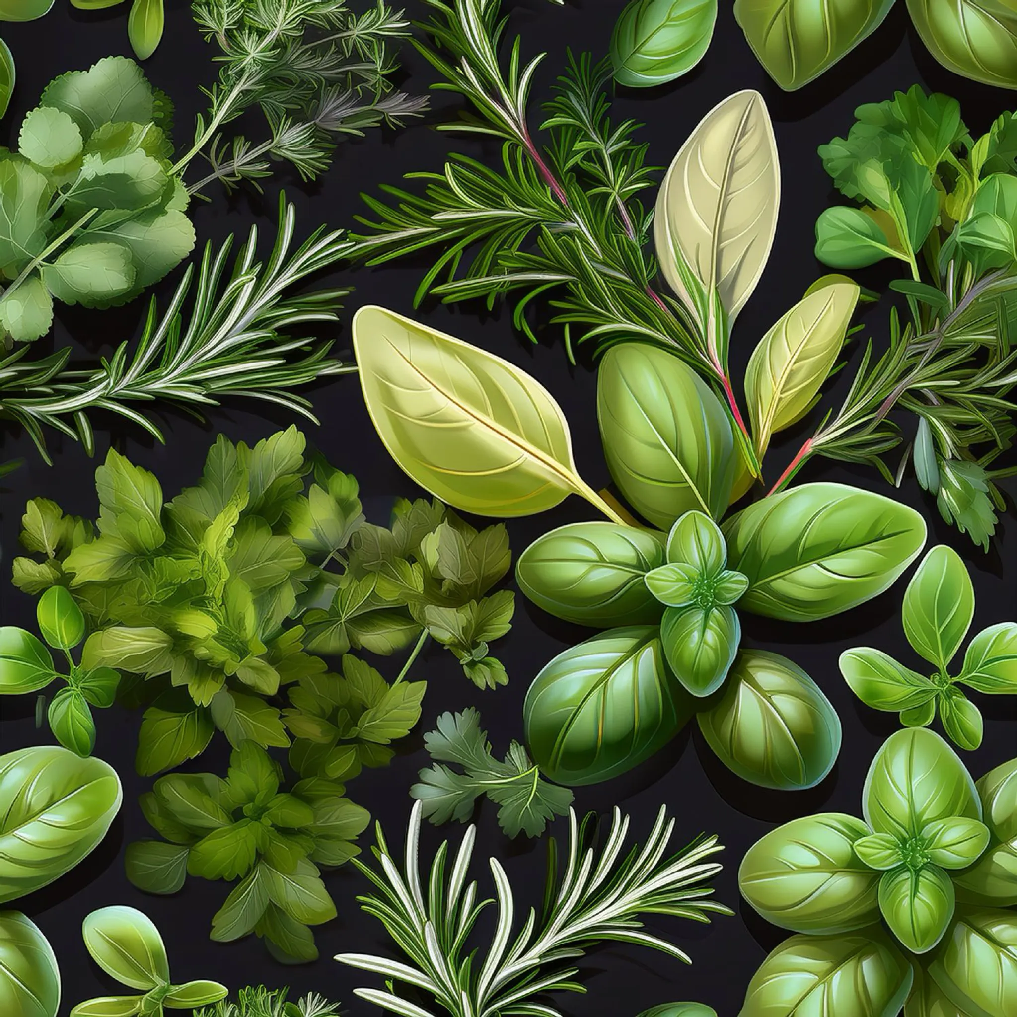 A dense background of various herbs as a seamless tile