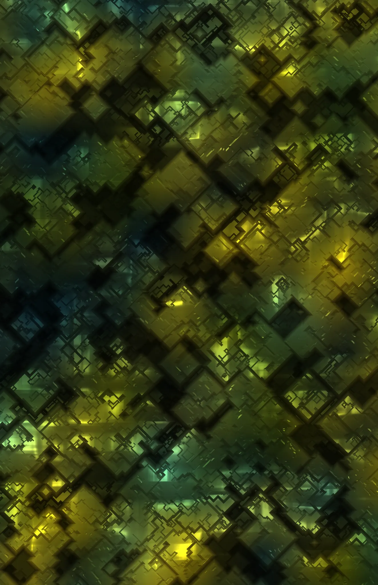 Multiple etched digital cube components interspersed on a background