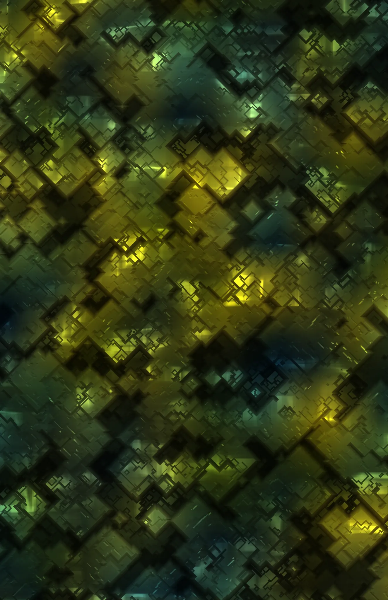 Multiple etched digital cube components interspersed on a background