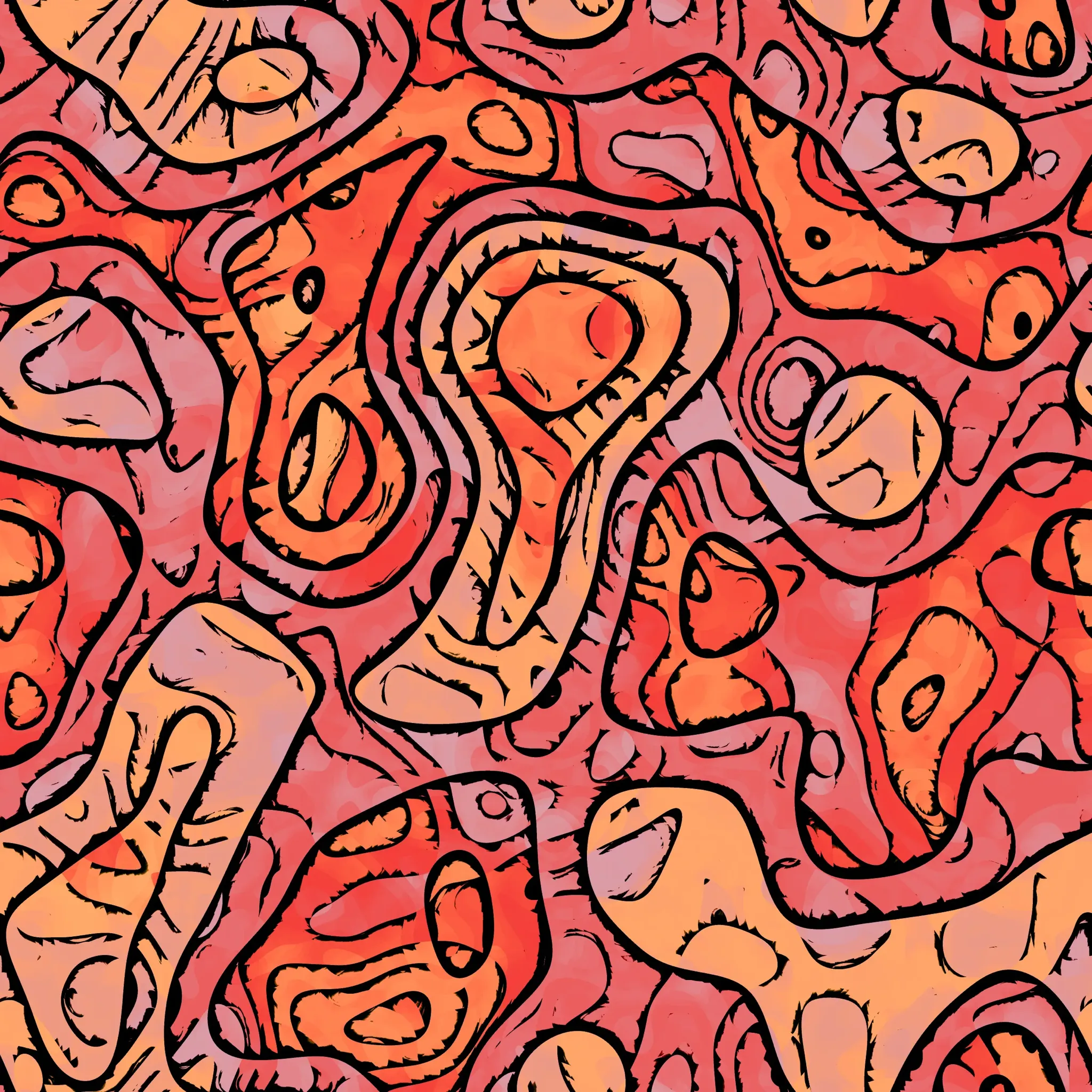 Colorful abstract patterned seamless tiles, etched in colorful leaking color