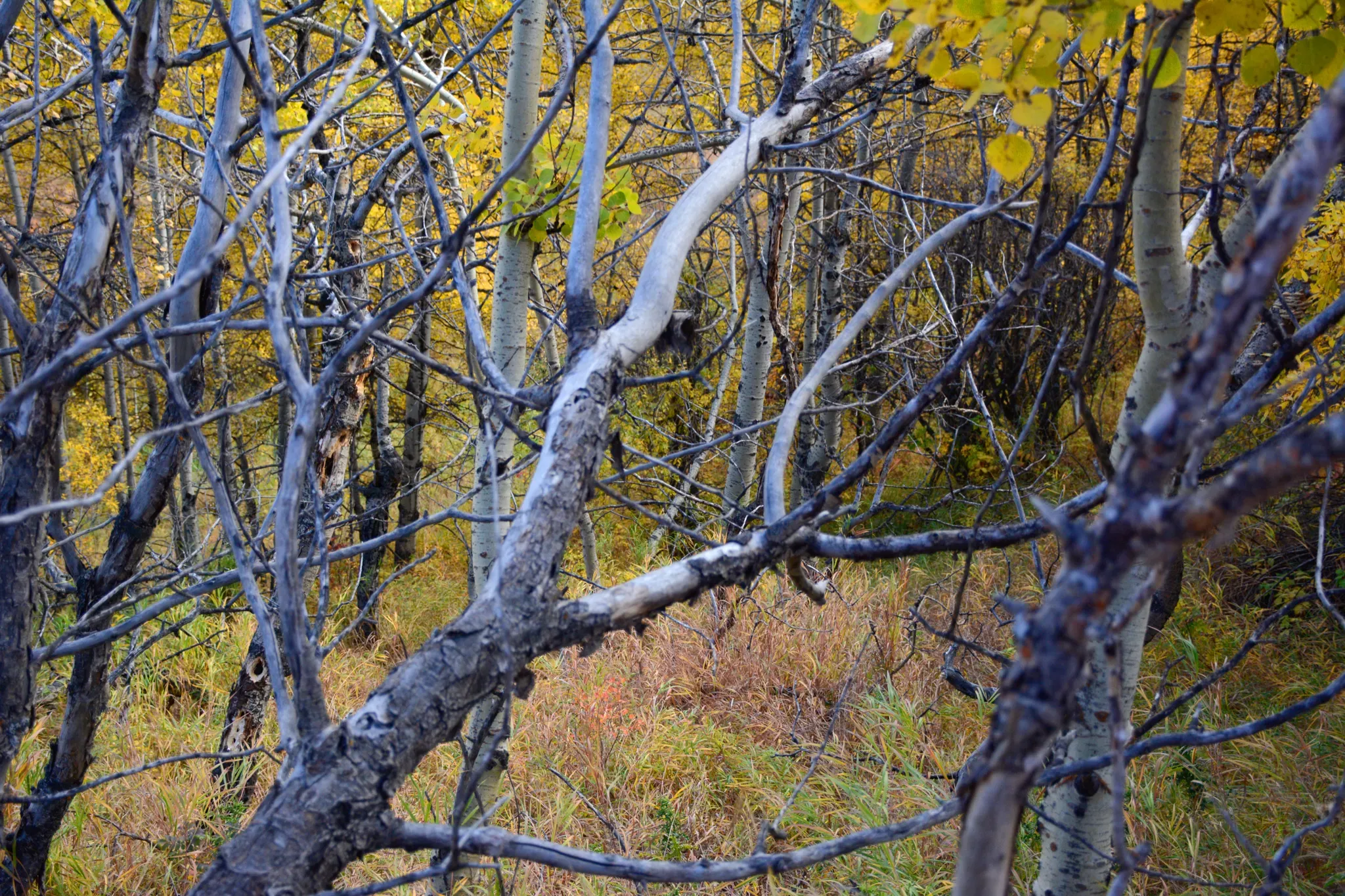 Fall forest scene showing dead brush and trees